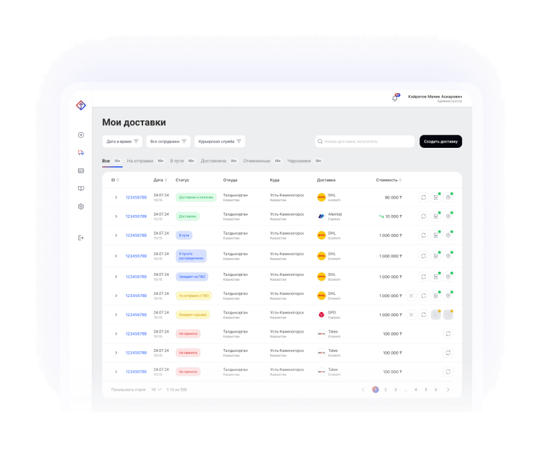 Мы имеем прямой договор и скидки от лучших курьерских служб Казахстана и берём на себя всю коммуникацию с ними, для экономии вашего времени!